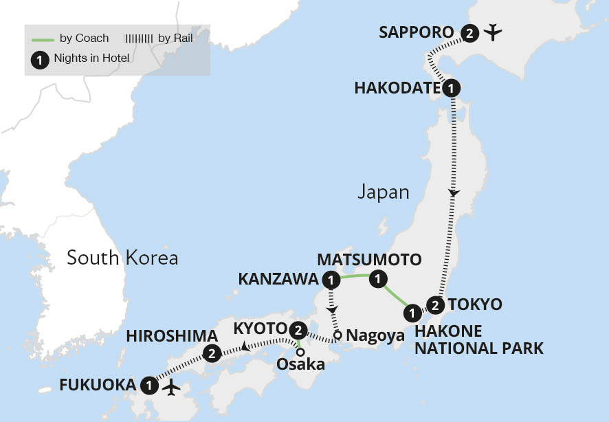 • Witness the contrasts of old and new from ancient mountain cities to modern Tokyo