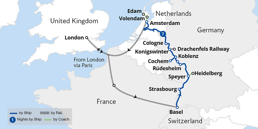 Experience the breathtaking beauty of the Netherlands to Switzerland on a luxury river cruise. Sail through four countries, admiring stunning forested valleys, charming half-timbered towns and historic cities lining the picturesque banks of this incredible river. Marvel at the spectacular scenery of the Rhine Gorge, a UNESCO World Heritage...
