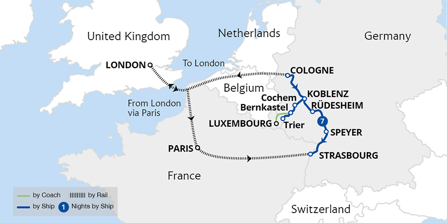 Embark on a festive cruise through Europe's most enchanting Christmas destinations on the Rhine river. Scenic landscapes and charming towns come alive with seasonal cheer in Germany and France during the most wonderful time of the year. From the twinkling lights of Koblenz's historic streets to the captivating markets of Rüdesheim,...