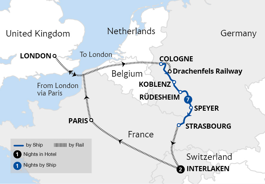 This beautifully scenic, easy-paced cruise takes us to the towns and cities of the River Rhine. Sailing by enchanting landscapes, discover Heidelberg and Strasbourg along with the sensational vistas of the UNESCO-listed Rhine Gorge. From Cologne, we sail south to explore the town of Koblenz, enjoy a guided tour of Heidelberg, and wander...