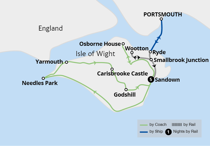 Enjoy a six-day holiday to the charming Isle of Wight where half the island is designated an Area of Outstanding Natural Beauty. Based in Sandown, savour sweeping coastal views and easy access to the island's most iconic sights. Step back in time at Carisbrooke Castle and explore the elegant Osborne House, Queen Victoria's beloved retreat,...