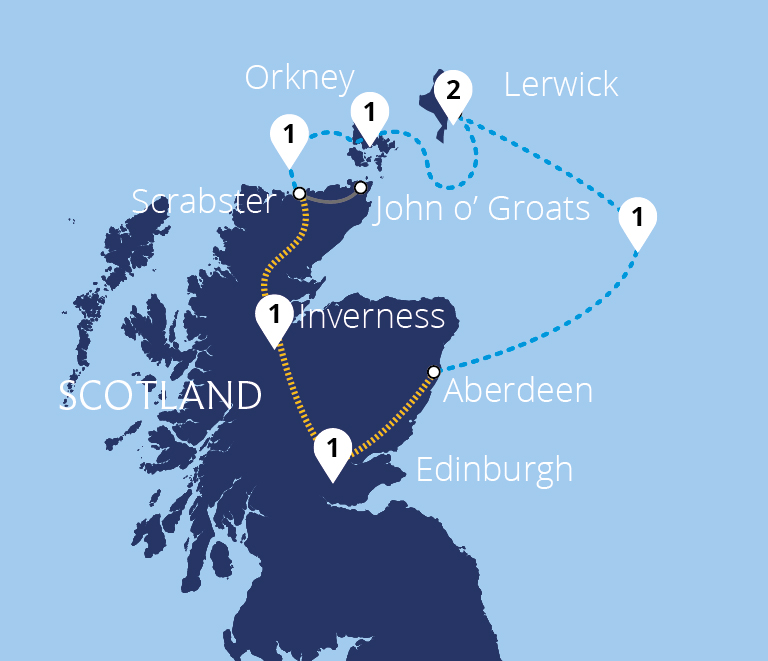 Uncover atmospheric castles, ancient archaeological sites and captivating wildlife in Orkney and Shetland. This magnificent Northern Isles holiday takes us from Edinburgh to the Granite City of Aberdeen and by ferry to Shetland and Orkney, before visiting Inverness. Encounters with Shetland ponies, seals and otters introduce us to the islands'...