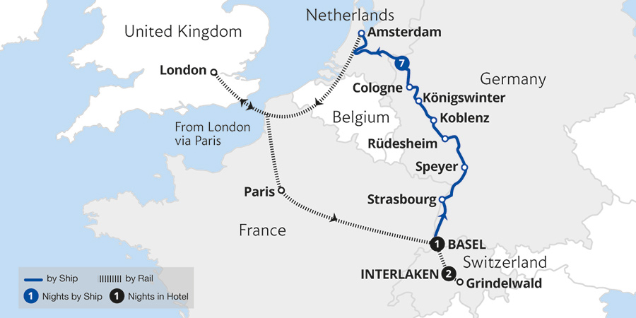 Fly to Amsterdam to experience the breathtaking beauty of the Netherlands to Switzerland on a luxury river cruise. Sail through four countries, admiring stunning forested valleys, charming half-timbered towns and historic cities lining this incredible river's picturesque banks before returning by air from Zürich. Marvel at the spectacular...