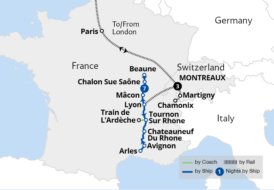 Your holiday begins as we meet at London St Pancras to board the Eurostar to Paris. In the French capital, we change trains for a journey by rail through French and Swiss countryside to Lake Geneva in Switzerland.