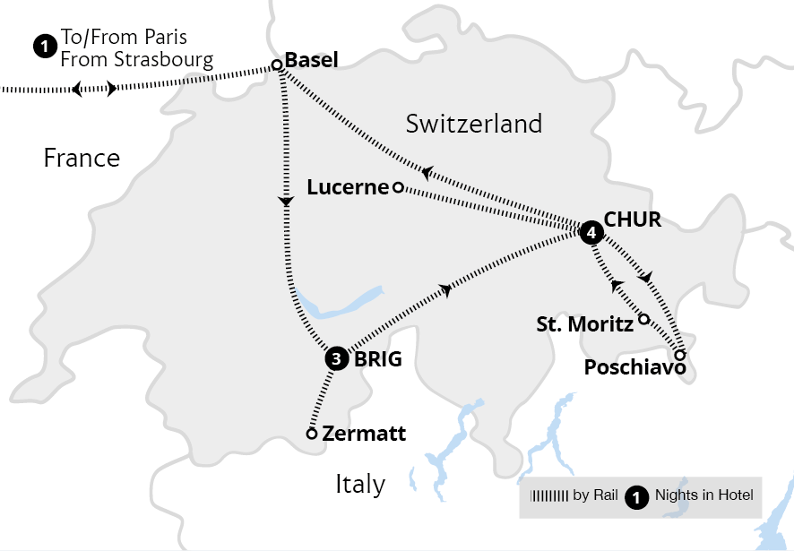 Enjoy Switzerland's warm hospitality and astounding landscapes from traditional hotels in historic Chur and idyllic Täsch, soaking up dramatic scenes of soaring mountains and glaciers aboard two iconic trains. Cross the Alps on the Bernina Express, admiring glacier views enroute to Poschiavo. The show continues as you bask in the alpine ...