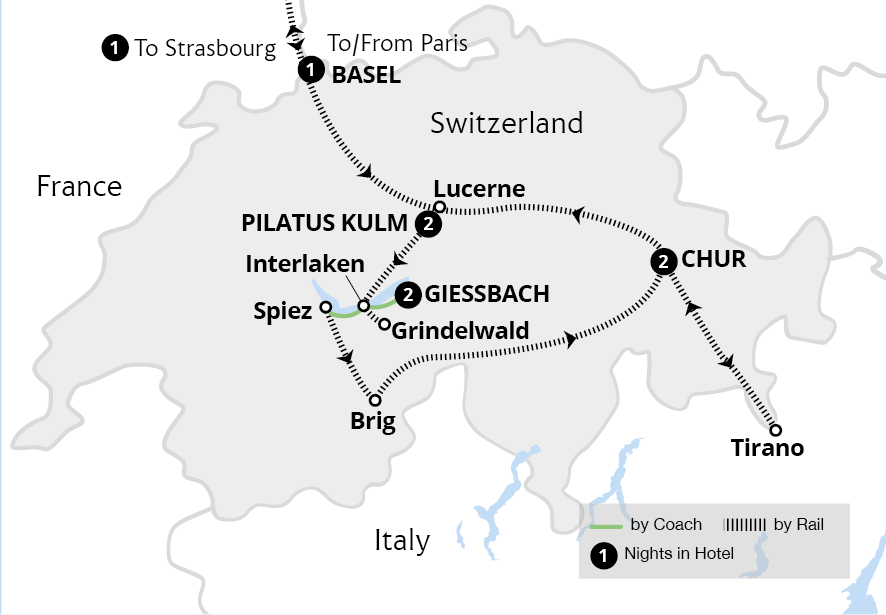 Enjoy one of the world's finest rail journeys aboard the legendary Glacier Express to Zermatt and admire Matterhorn views from the charming Gornergrat Railway. Descending the Alps, set sail on a sensational Rhine cruise, indulging in luxurious amenities and superb service. Enroute, savour incredible vistas of the stunning Rhine Gorge. Wander...